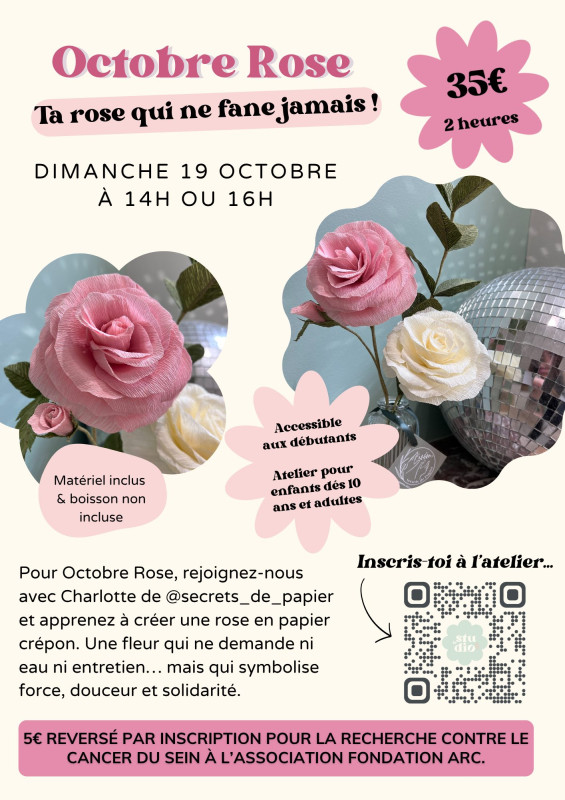 Pour Octobre Rose, rejoignez-nous avec Charlotte de @secrets_de_papier et apprenez à créer une rose en papier crépon : girly, éternelle et pleine de peps !