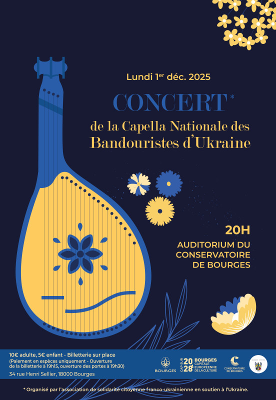 Concert de bandoura organisé par l'association de solidarité citoyenne franco-ukrainienne pour soutenir l'Ukraine.